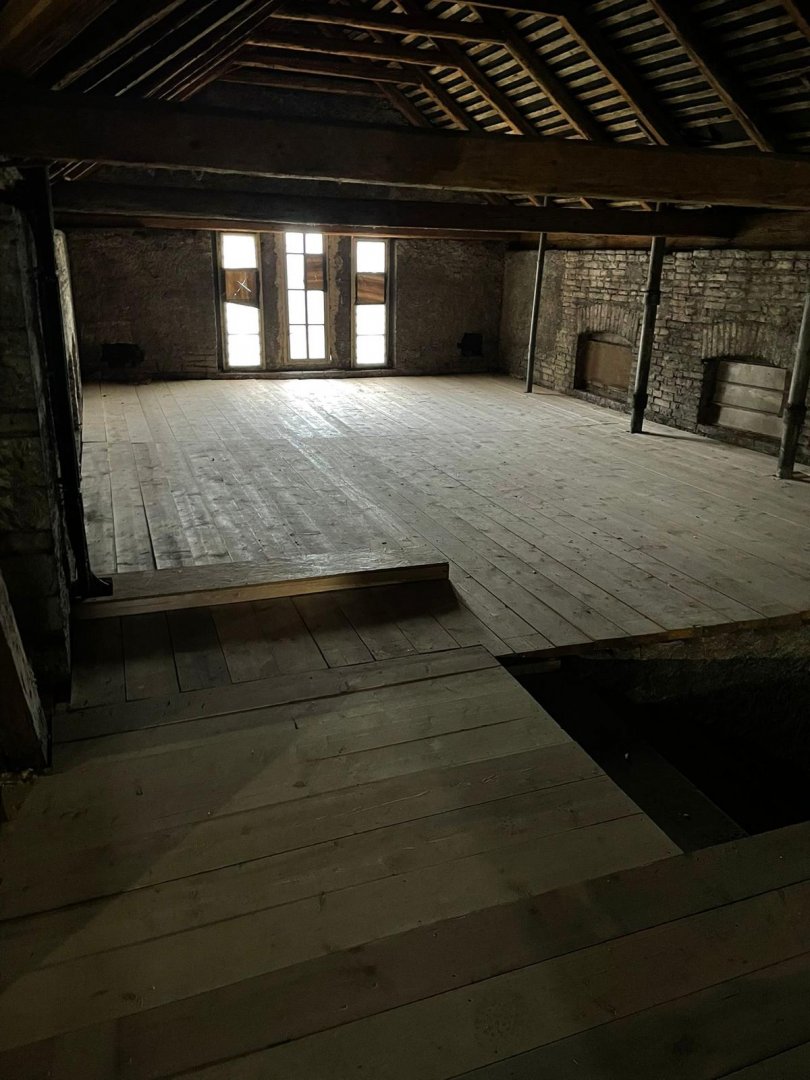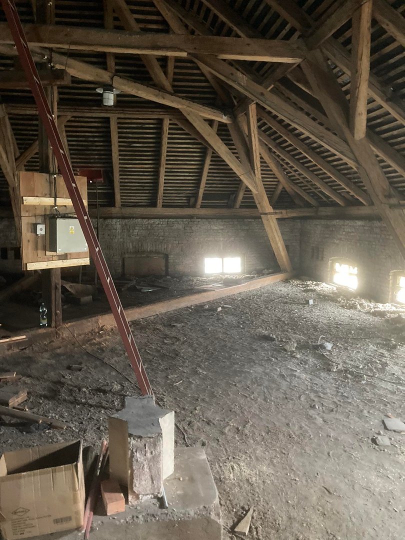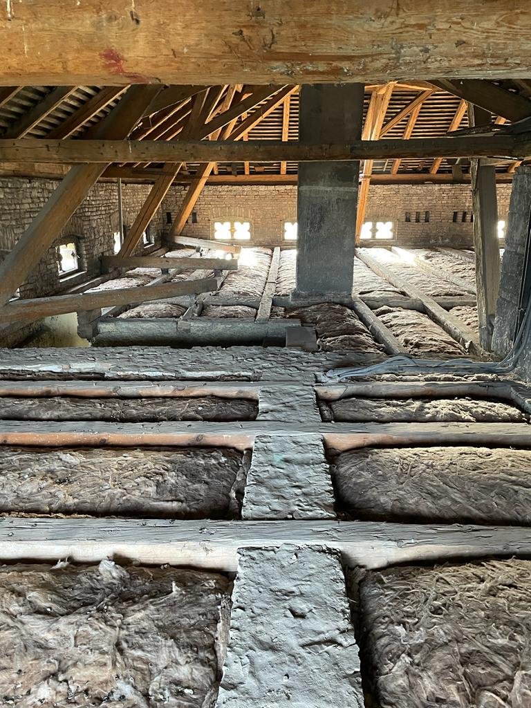 Technický dozor - Oprava krovu a podlahových trámů výměnou nebo zesílením příložkami. Pokládka nové fošnové podlahy a zateplení stropu vatou.